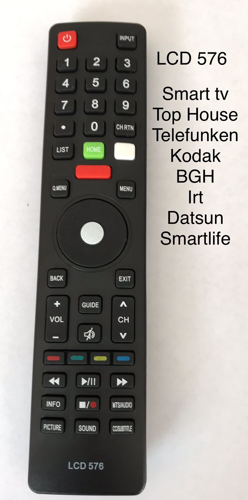 Control remoto LCD 576, Smart tv, Top House, Telefunken Kodak, BGH, IRT, Datsun, Smarlife